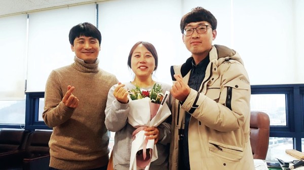 <사진설명>무등일보 김혜진 기자의 출산휴가를 앞두고 한경국·서충섭 기자가