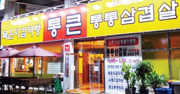 주인장의 후덕한 인심을 반영하듯 통삼겹살은 양도 푸짐하지만 고소한 맛도 일품이어서 손님들이 찾는 주메뉴가 됐다. 삼겹살과 함께 돌솥뼈다귀해장국(8천원)을 곁들이면 금상첨화지만 간밤에 마신 술을 풀고 싶다면 4인분에 3만8천원 하는 묵은지 해장국도 그만이다.