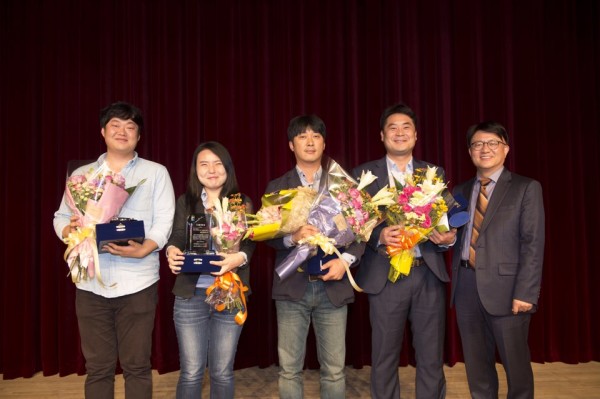 <사진설명> 박기웅·백희준·김형호·이종행 기자와 김기태 5·18언론상 심사위원장(왼쪽부터)