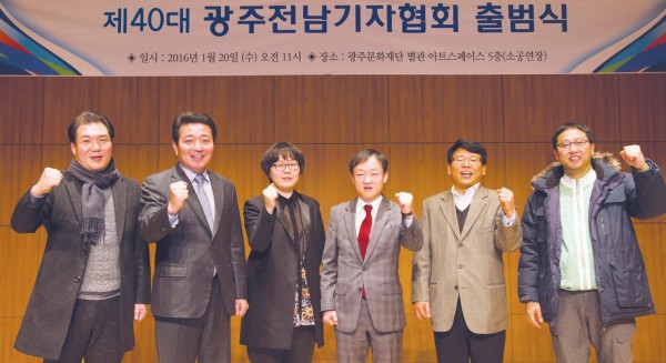 <사진설명> 지난달 20일 ‘40대 광주전남기자협회 출범식’에서 집행부가