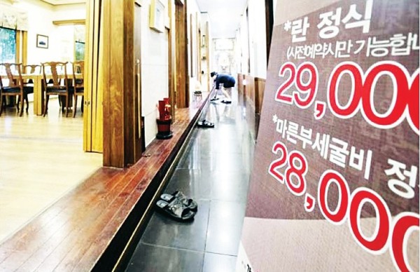 지난달 28일 낮 광주의 한 유명 식당(상)은 한산한 반면