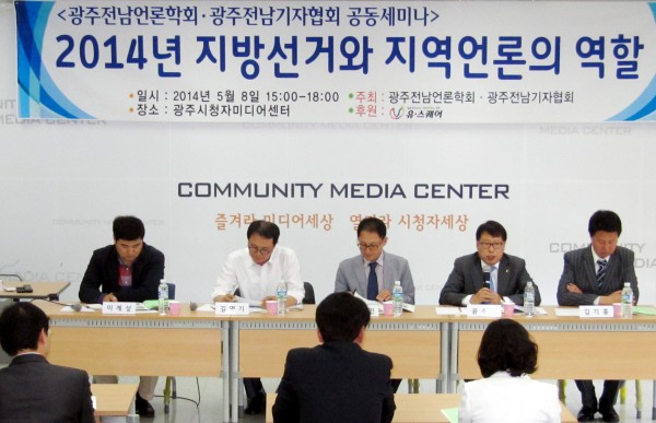광주전남언론학회(회장 주정민·전남대 교수)와 광주전남기자협회(회장 구길용)는 지난 5월8일 광주시청자미디어센터에서 ‘2014년 지방선거와 지역언론의 역할’이라는 주제로 공동 세미나를 개최했다.