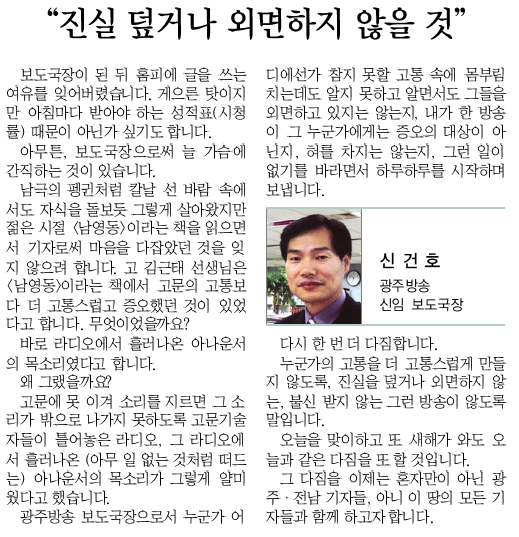 진실 덮거나 외면하지 않을 것 게시글 작성정보 작성자 광주전남기자협회 작성일 13-02-04 17:45 조회수 4,851 댓글수 0 목록 게시글 본문 진실 덮거나 외면하지 않을 것 첨부파일 1개 기고1.png (117.1K) 0회 다운로드 첨부일시 : 2013-02-04 17:45:44 이전글 기자협회 가능철 체육대회 13-02-04 댓글 0 등록된 댓글이 없습니다. 목록