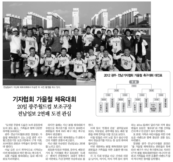 기자협회 가능철 체육대회 게시글 작성정보 작성자 광주전남기자협회 작성일 13-02-04 17:48 조회수 4,867 댓글수 0 목록 게시글 본문 기자협회 가능철 체육대회 20일 광주월드컵 보조구장 전남일보 2연패 도전 관심 첨부파일 2개 이미지 5.png (346.2K) 0회 다운로드 첨부일시 : 2013-02-04 17:48:25 이미지 6.png (344.4K) 0회 다운로드 첨부일시 : 2013-02-04 17:48:25 이전글 [기고]기자상, MBC 파업사태를 보며.. 13-02-04 다음글 진실 덮거나 외면하지 않을 것 13-02-04 댓글 0 등록된 댓글이 없습니다. 목록