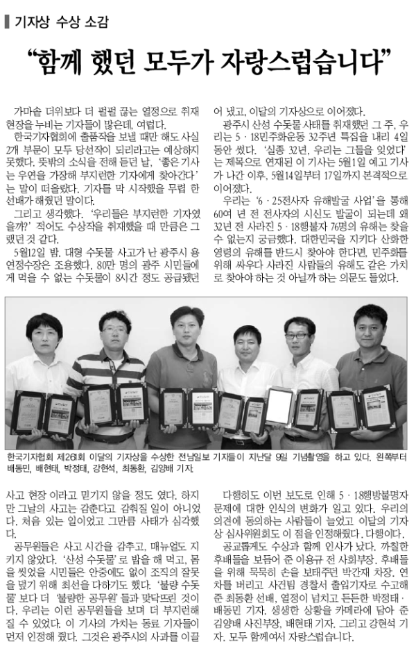 전남일보 '이달의 기자상'기획·취재부문 동시 수상 게시글 작성정보 작성자 광주전남기자협회 작성일 13-02-04 17:18 조회수 5,833 댓글수 0 목록 게시글 본문 전남일보 '이달의 기자상'기획·취재부문 동시 수상 첨부파일 2개 이달의기자상1.png (58.8K) 0회 다운로드 첨부일시 : 2013-02-04 17:18:21 이달의기자상2.png (286.9K) 0회 다운로드 첨부일시 : 2013-02-04 17:18:21 이전글 제43회 '한국기자상' 수상 13-02-04 댓글 0 등록된 댓글이 없습니다. 목록