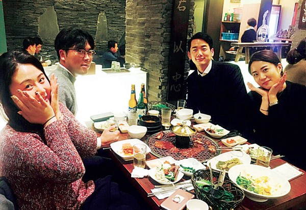 <사진설명(상)> 남도일보 18기 막내기자 4명이 마한지에서 돼지갈비와 폭탄주를