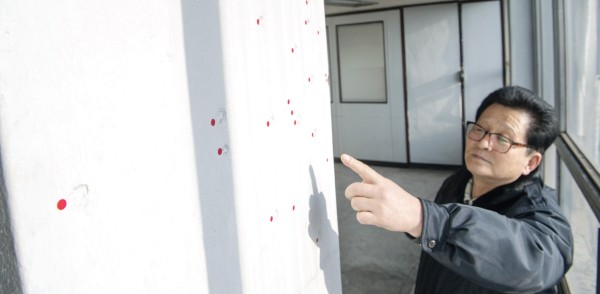 <사진설명 하> 지난 4월 전일빌딩 총탄 흔적들에 대해 헬기 사격 가능성이 크다는