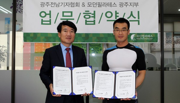광주전남기자협회(회장 구길용)와 모던필라테스 광주지부(대표 황관선)가 지난 10월21일 광주 서구 모던필라테스 교육센터에서 기자들과 가족들의 건강 예방을 위해 업무협약을 체결했다.