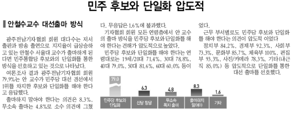 민주 후보와 단일화 압도적 게시글 작성정보 작성자 광주전남기자협회 작성일 13-02-04 18:00 조회수 4,650 댓글수 0 목록 게시글 본문 민주 후보와 단일화 압도적 첨부파일 1개 정치6.png (89.9K) 0회 다운로드 첨부일시 : 2013-02-04 18:00:17 이전글 백화점식 나열 지양 유권자 시각서 의제 파악 13-02-04 다음글 박근혜, 전 연령층 고른 지지 13-02-04 댓글 0 등록된 댓글이 없습니다. 목록