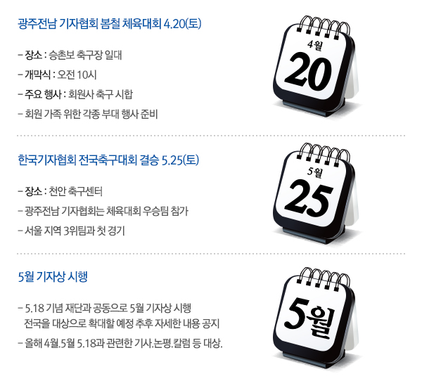 광주전남 기자협회 4월~5월 주요행사안내 게시글 작성정보 작성자 광주전남기자협회 작성일 13-03-18 13:49 조회수 3,890 댓글수 2 목록 게시글 본문 광주전남 기자협회 4월~5월 주요행사안내 첨부파일 1개 공지사항.jpg (148.9K) 0회 다운로드 첨부일시 : 2013-03-18 13:49:00 이전글 무등산 역사길탐방 13-03-26 다음글 홈페이지 오픈기념 이벤트행사 13-03-14 댓글 2 등록된 댓글이 없습니다. 목록