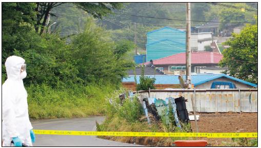 <사진설명> 지난달 11일 보성군 방역 관계자가 메르스 확진 환자가 거주한