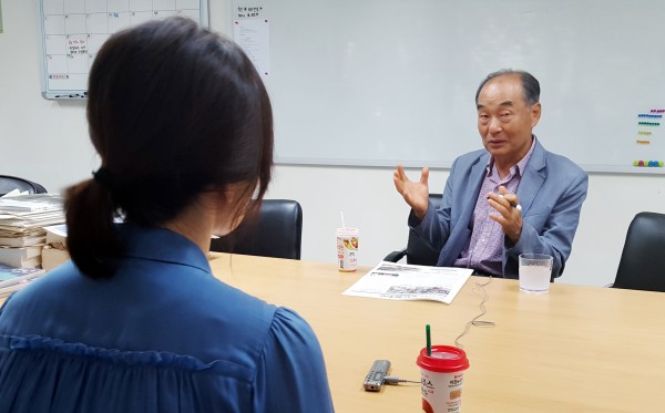 지난달 김종남 전 광주일보 편집국장을 인터뷰하고 있다. - 맹대환 편집위원(뉴시스)
