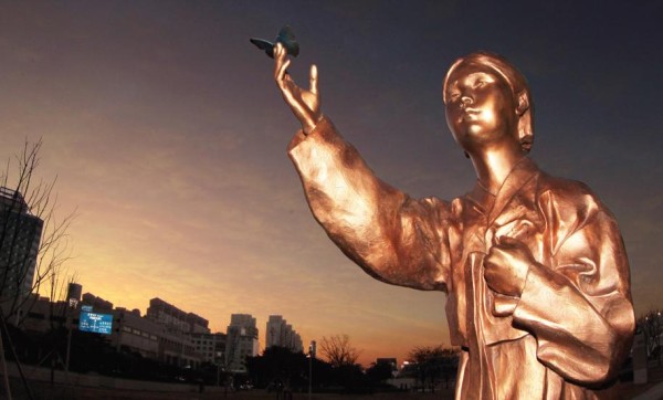 (상) 지난해 8월 광주 시청 야외광장에 세워진 '평화의 소녀상'