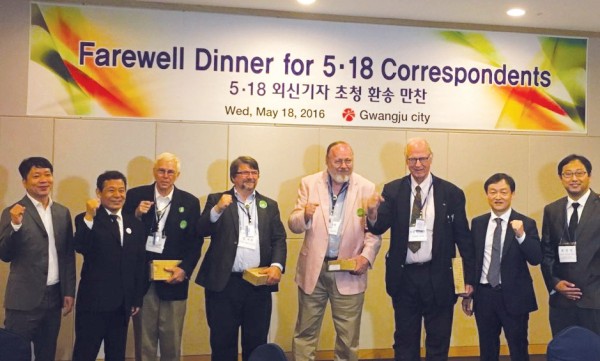 5월 광주 '기자정신' 상징물 받고 외신기자 '함박웃음'