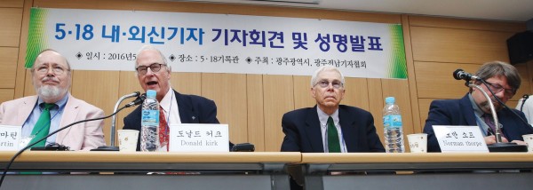 지난 5월16일 9시31분, 예정보다 딱 1분 늦었다. 1980년 5월의 아픔을 세계에 알린 외신기자들은 흔히 볼 수 있는 20인승 '유치원 버스'를 타고 도착했다. 생각보다 젊었다. 버스에서 내린 브래들리 마틴·노만 소프·팀 셔록·도날드 커크, 36년만의 광주·전남지역 후배 기자들의 공식 초청에 응답해 준 선배 기자들의 발걸음은 경쾌했다. 그들은 분명 오월의 아름다운 남도의 하늘 대신, 옛 전남도청 별관 건물을 먼저 바라본 듯 했다. 그들의 눈동자는 촉촉했다.