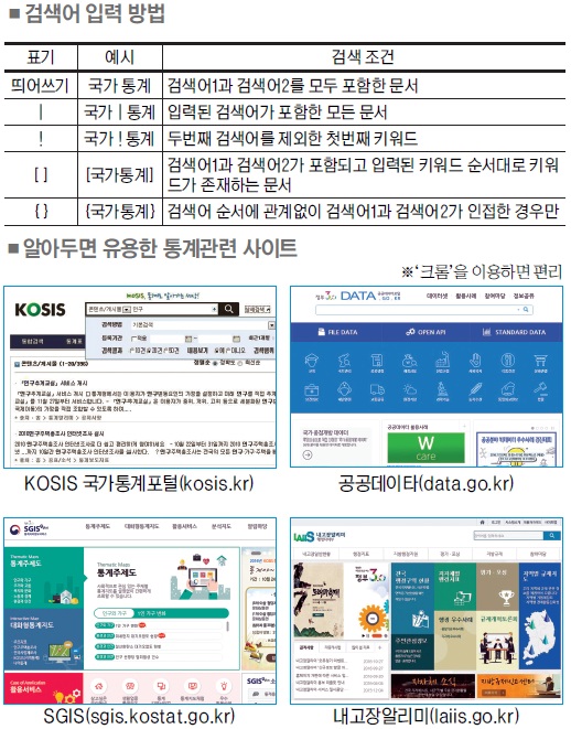출입처에 요청한 자료가 언제 오나 애를 태우지 않아도 KOSIS 국가통계포털(kosis.kr)에 가면 웬만한 통계 자료를 클릭 몇 번으로 구할 수 있다.