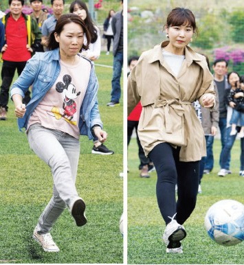 <사진설명> 지난해 봄철체육대회 당시 여기자들의 역동적 몸놀림
